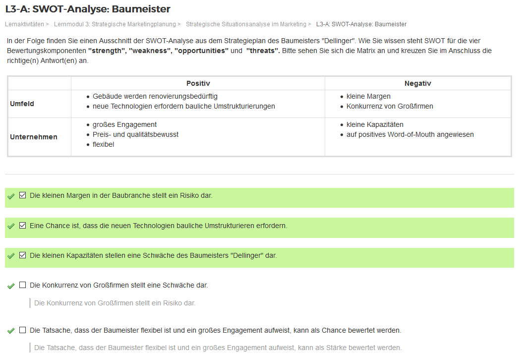Beispiel 3: https://learn.wu.ac.at/dotlrn/classes/mktg/tlf-lrn/o_l3_strategische_marketingplanung/L3_1_situationsanalyse/l3_a_swot_analyse_baumeister?m=modul_submit , 25.09.2019.  (MyLEARN-Login erforderlich)