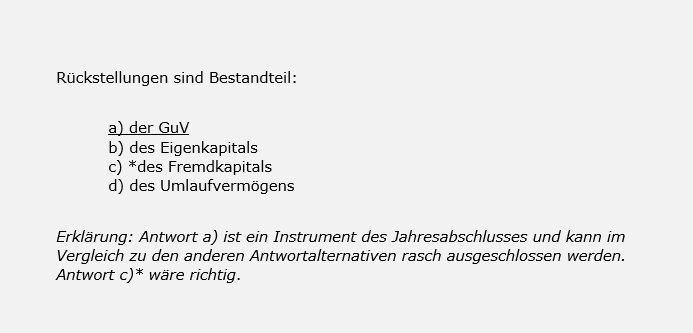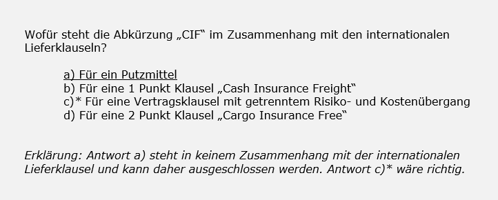 • Schwarz-Weiß-Fragen: Wenn zwei Antwortoptionen genau das Gegenteil voneinander behaupten, ist sehr häufig eine dieser beiden Antwortmöglichkeiten korrekt.