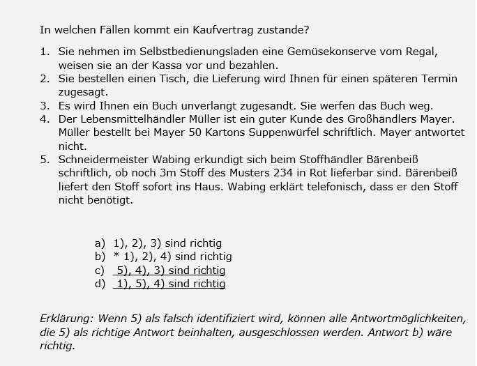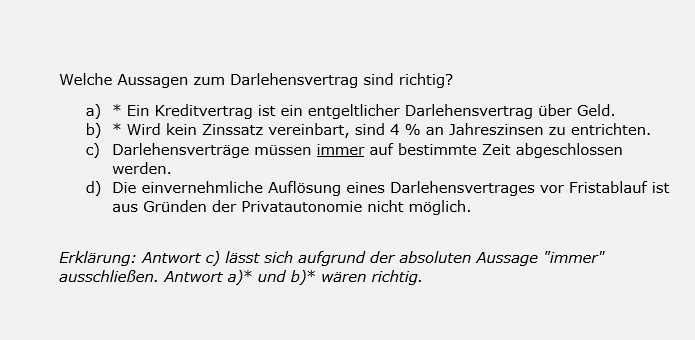 • Absolute Aussagen: Absolute Aussagen wie „immer, nie, alle, ausschließlich,...“ weisen stark auf falsche Antwortalternativen hin.